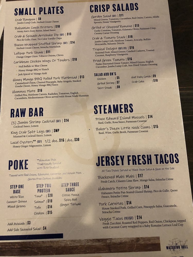 Introducing The Watering Hull, an eclectic lounge offering a mix of sandwiches and seafood in Stone Harbor, NJ. With a trendy and casual atmosphere, this establishment provides wheelchair accessibility, vegan options, and a range of amenities such as outdoor seating, free Wi-Fi, live music, and a full bar. The menu includes favorites like veggie tacos, chicken salad wrap, mahi mahi tacos, and sushi bowls with unique twists and fresh ingredients. Customers rave about the relaxed ambiance, attentive staff, and delicious offerings like crab Rangoon, shrimp tacos, and bacon-wrapped shrimp. The Watering Hull is the perfect spot for a date night, lunch, or evening out with friends and family. Experience a memorable dining experience with the diverse and flavorful dishes at this vibrant eatery.