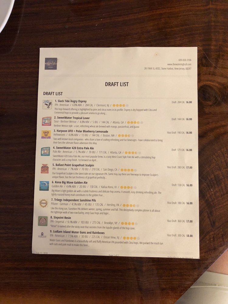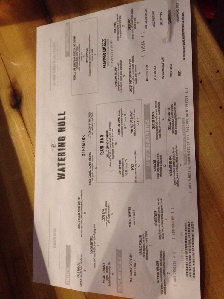The Watering Hull Menu (Update 2025)